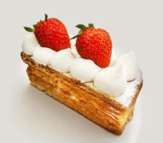 新鮮な苺とクリームが重なり、サクサクのパイ生地で包まれた、フランスの美味しい苺ミルフィーユ。