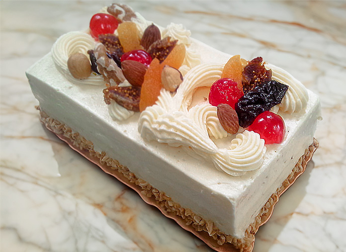 漬け込んだフルーツ入りクレームオブール(バタークリーム)デコレーション。